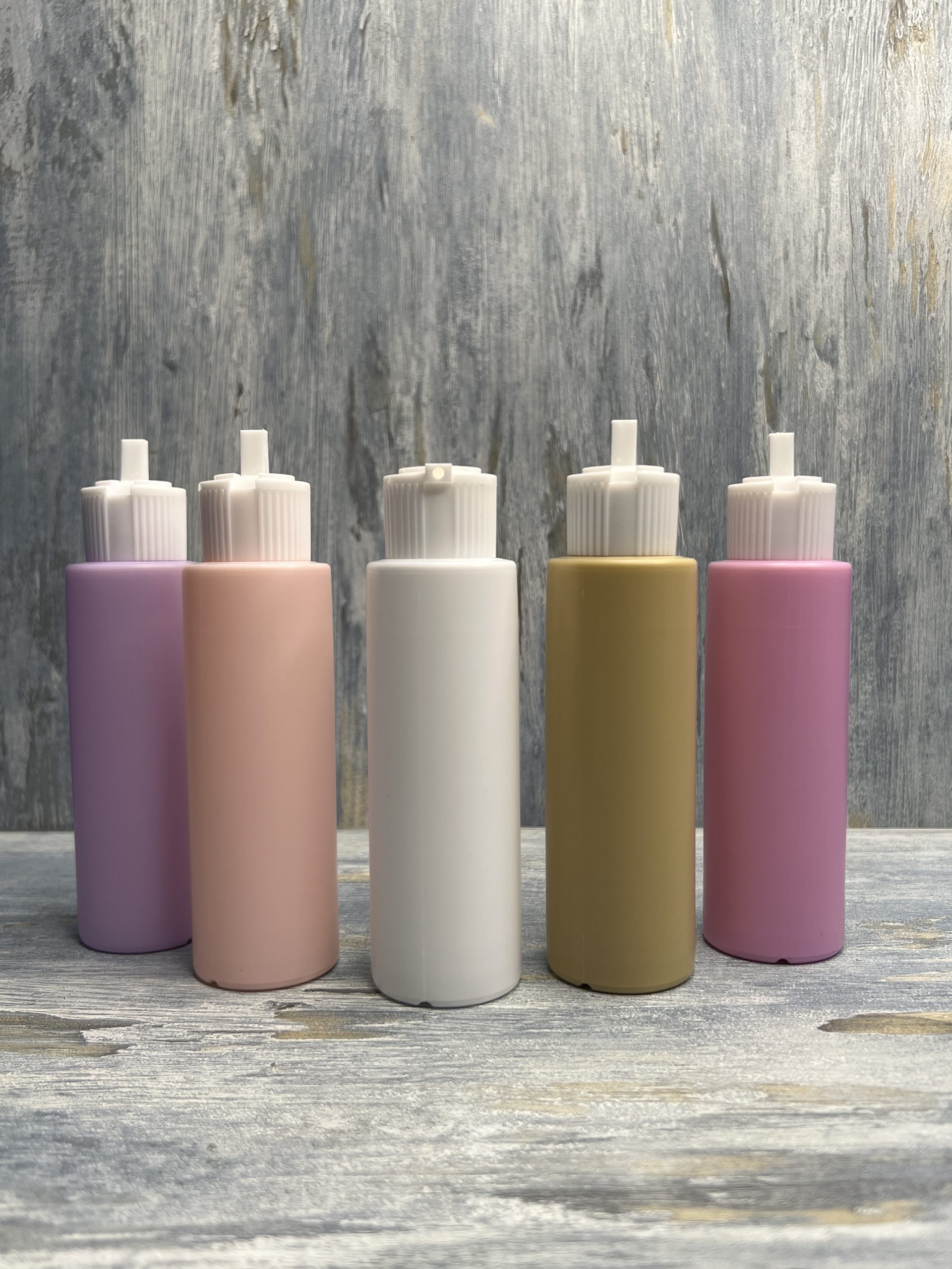 Color: Colored bottles with white turret cap